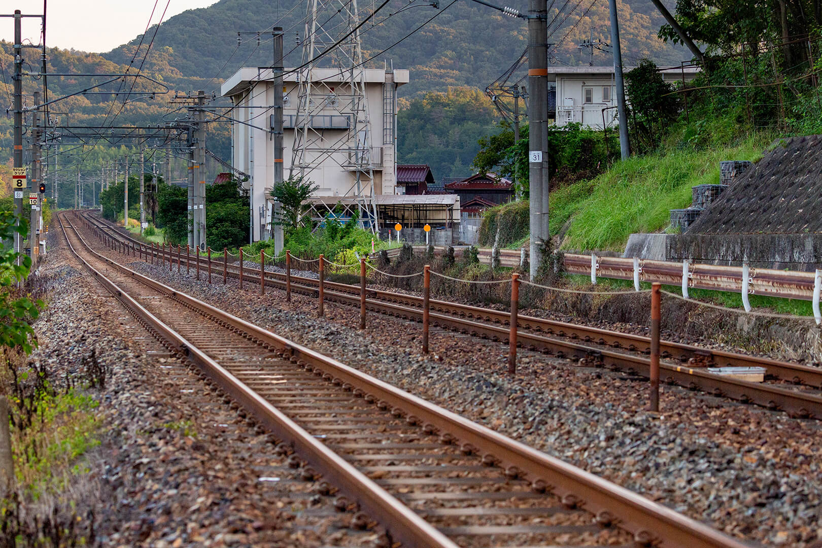 線路脇にコンクリートの基礎があり、その上から撮影しています。