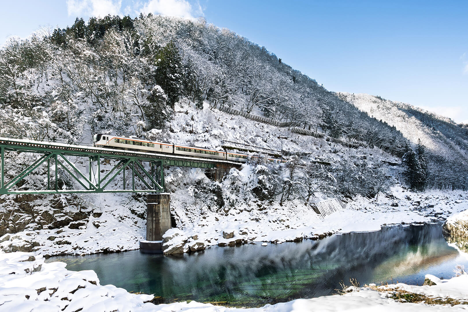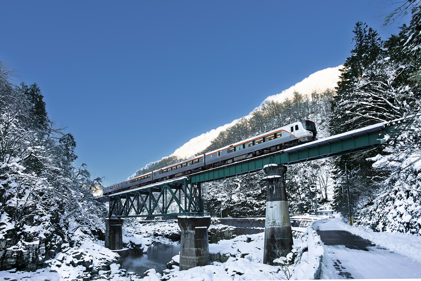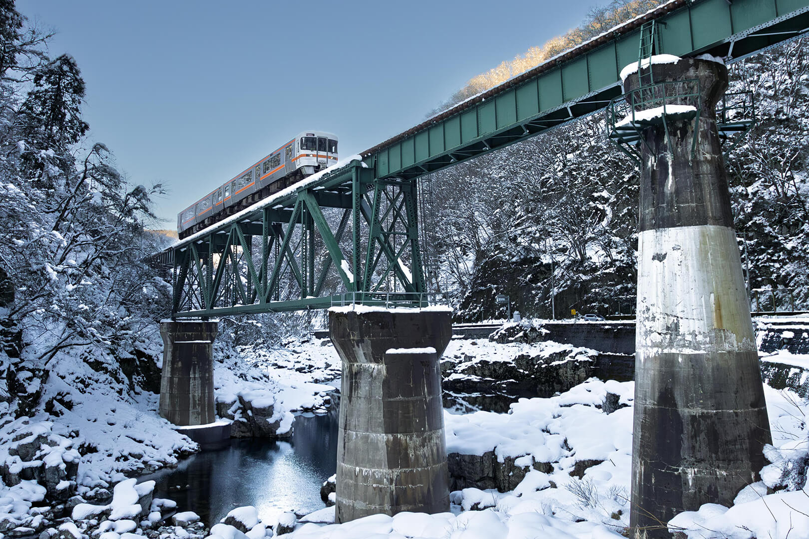 廃道から撮影できますが、作例は川の中にある岩の上から撮影しています。川岸へ降りるのに梯子(2~3m)が必要です。